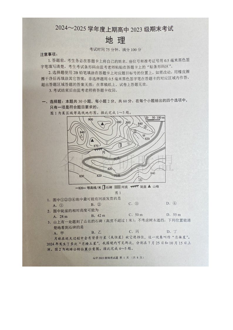 四川省成都市蓉城名校联盟2024-2025学年高二上学期期末考试 地理.pdf