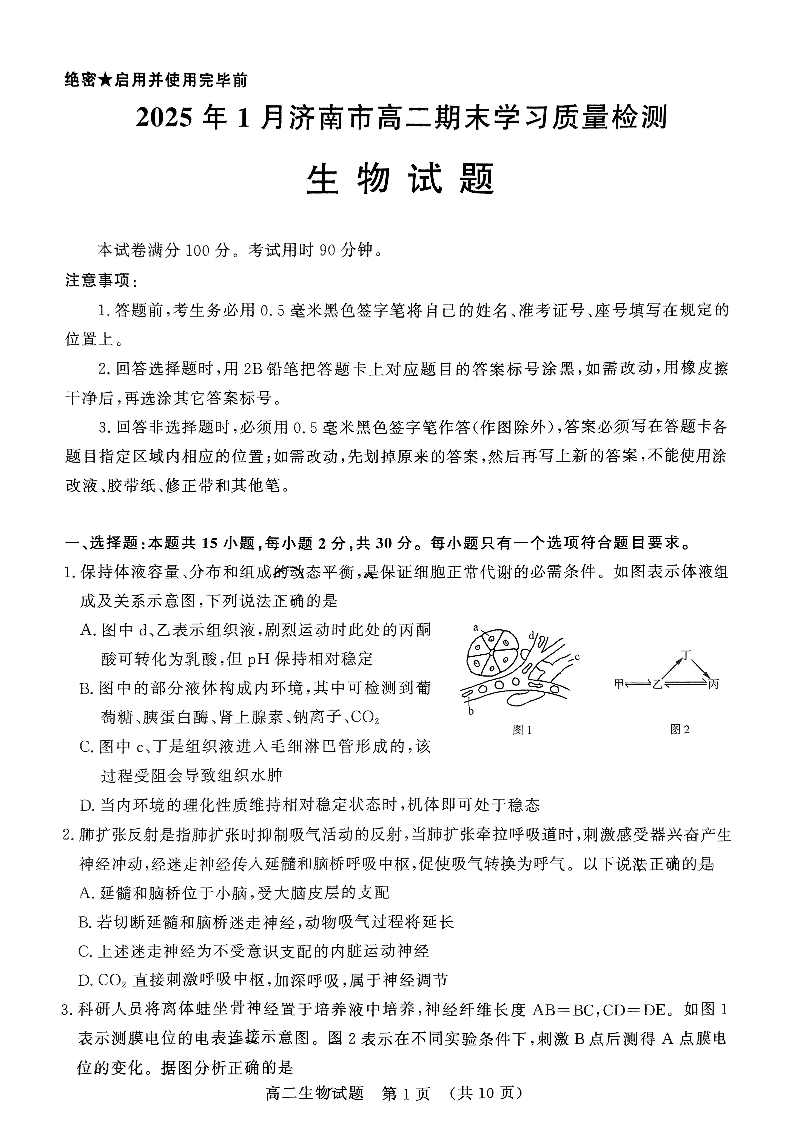 2025年1月济南市高二期末学习质量检测 生物.pdf