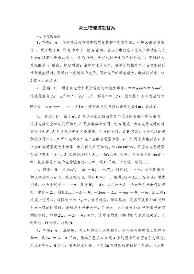 湖北省部分高中协作体2024-2025学年高三下学期4月期中联考 物理答案.docx