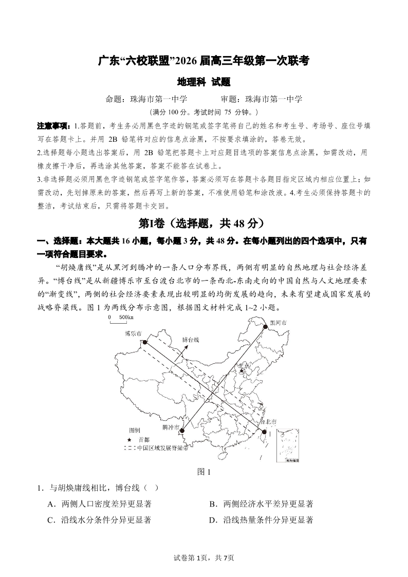 广东省“六校联盟”2026届高三年级第一次联考 地理.pdf