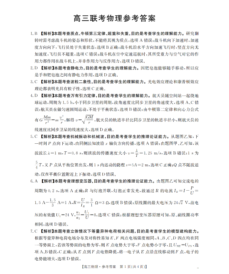 贵州省金太阳2026届高三8月开学联考 物理答案.pdf