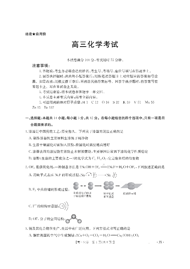 金太阳·江西省2026届高三上学期8月百万大联考 化学.pdf