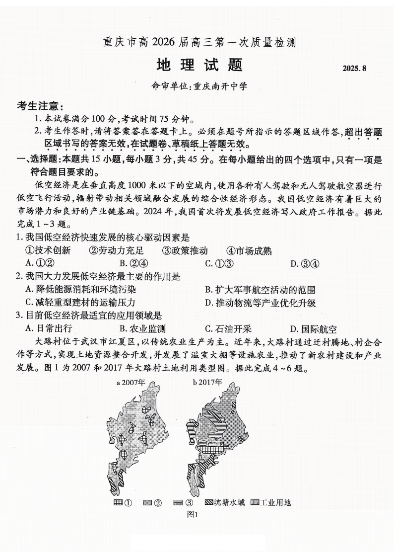 重庆市南开中学高2026届高三第一次质量检测 地理.pdf