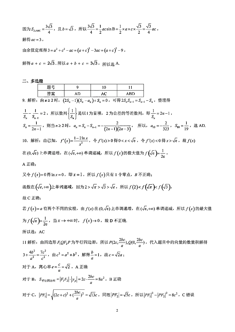 云南省昆明市第一中学2026届高三年级第二次联考数学答案.pdf