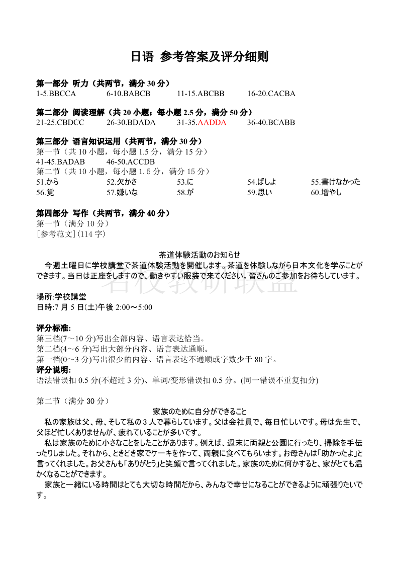 考阅评·广西示高2025年9月高三联考 日语答案.pdf
