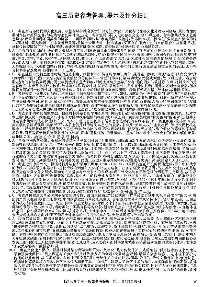 九师联盟2026届高三9月质量检测 历史答案.pdf