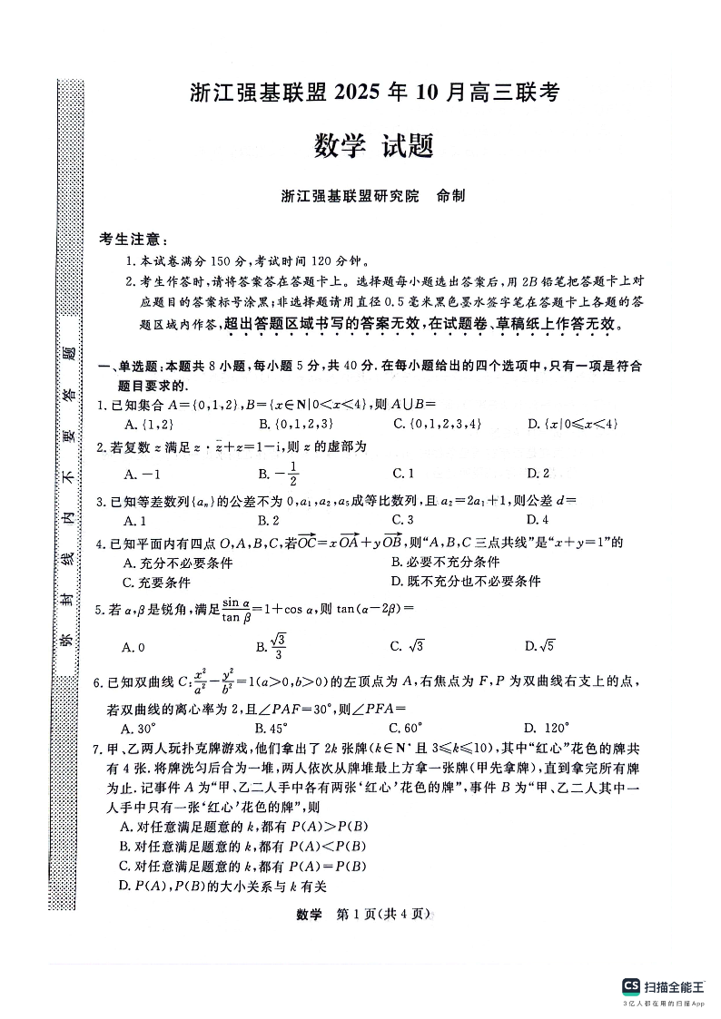 浙江强基联盟2025年10月高三联考 数学.pdf