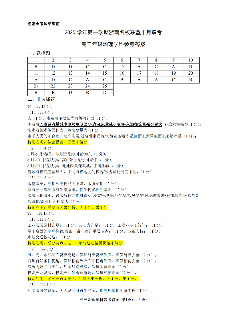 26届浙南名校联盟国庆返校考 地理答案.pdf