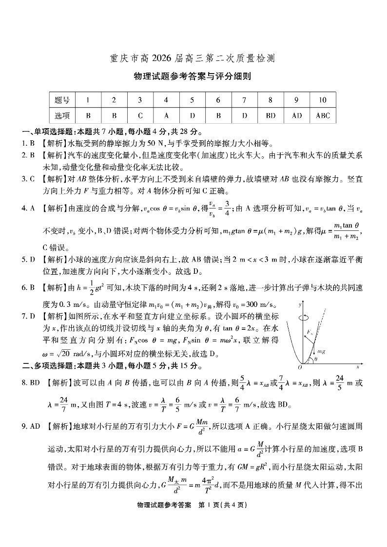 南开中学高2026届高三第二次质量检测 物理答案.pdf