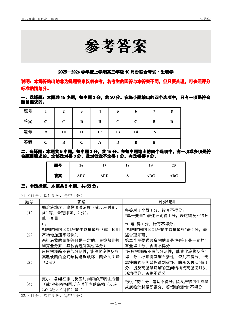 点石联考2025-2026学年度上学期高三年级10月份联合考试 生物答案.pdf
