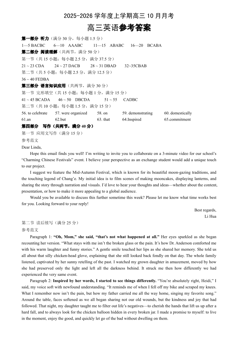 湖北省“新八校”协作体2025-2026学年度上学期高三10月月考 英语答案.pdf