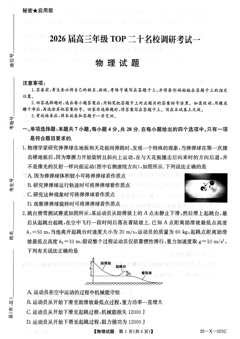 河南省2026届高三年级TOP二十名校调研考试一 物理.pdf