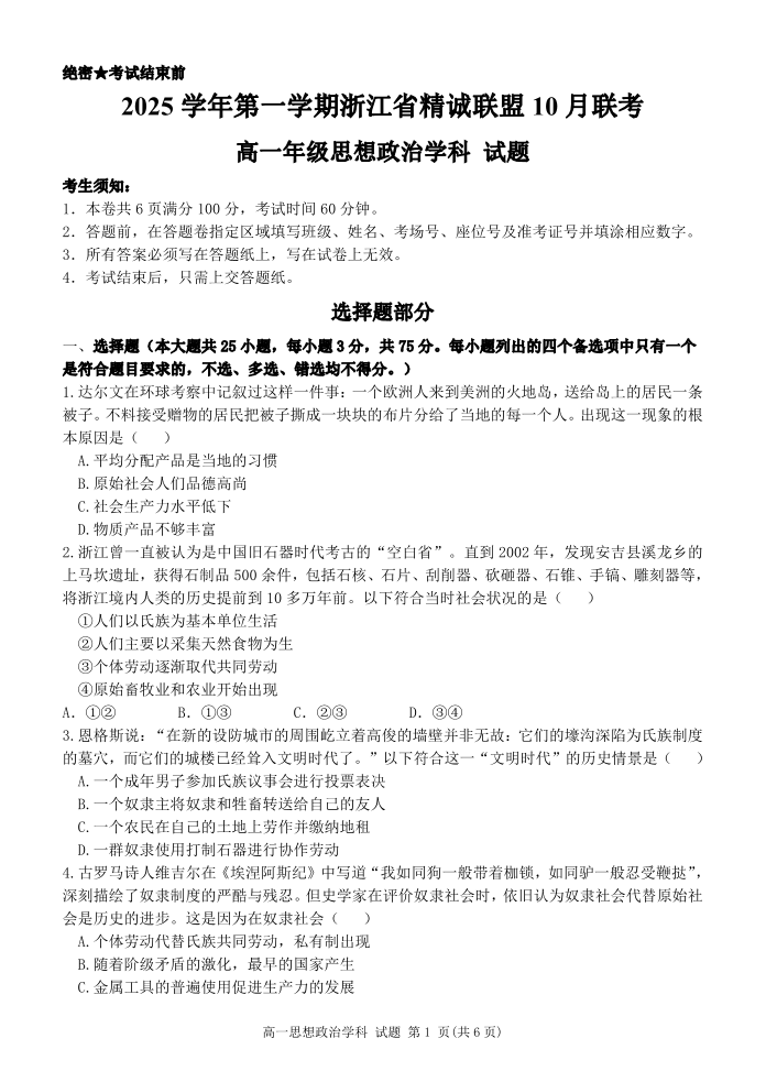 2025学年第一学期浙江省精诚联盟10月联考 政治.pdf