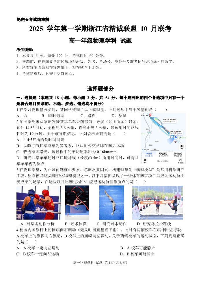 2025学年第一学期浙江省精诚联盟10月联考 物理.pdf