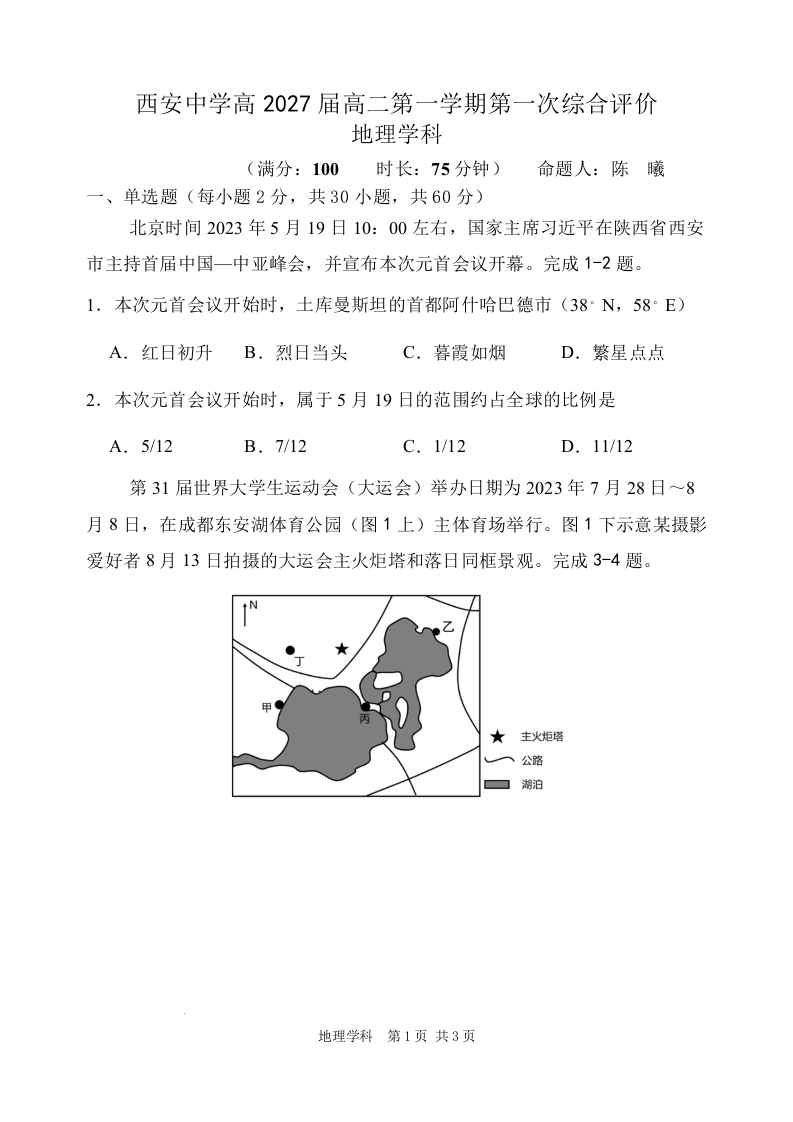 陕西省西安中学2025-2026学年高二上学期第一次综合评价 地理.docx
