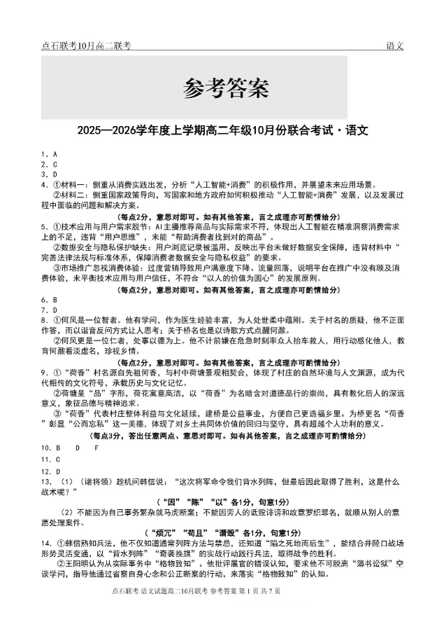 辽宁省点石联考2025-2026学年上学期高二年级10月份联合考试 语文答案.pdf