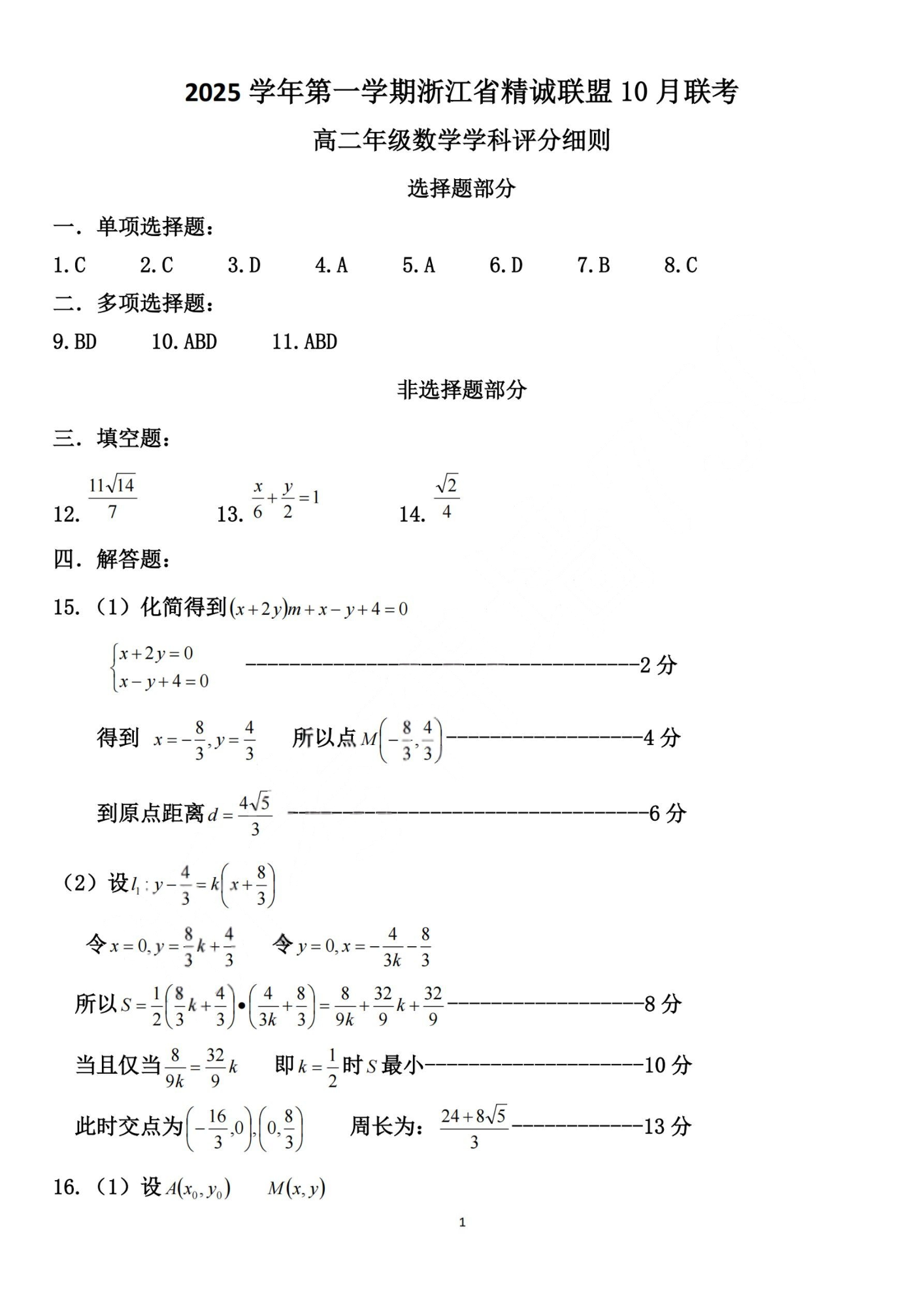 2025学年第一学期浙江省精诚联盟高二年级10月联考 数学答案.pdf