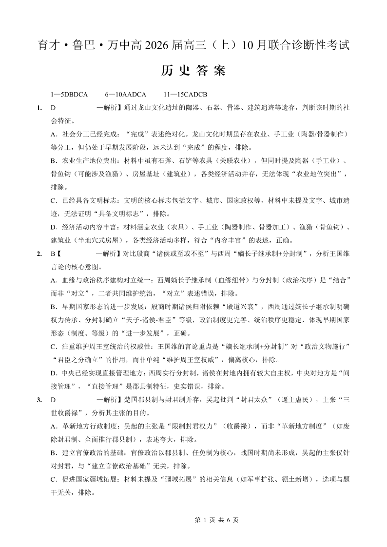 育才·鲁巴·万中高2026届高三(上)10月联合诊断性考试 历史答案.pdf