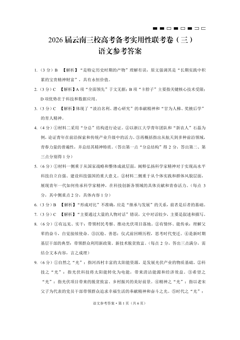 2026届云南三校高考备考实用性联考卷(三)语文答案.pdf