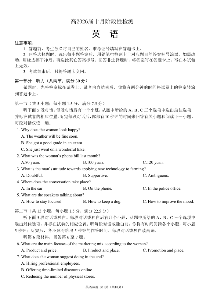 四川省成都市第七中学2025-2026学年高三上学期十月阶段性检测 英语.pdf