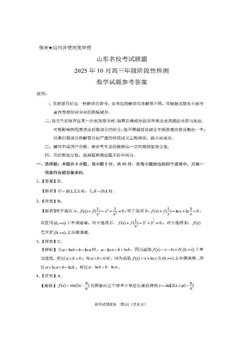 山东名校考试联盟2025年10月高三年级阶段性检测 数学答案.pdf