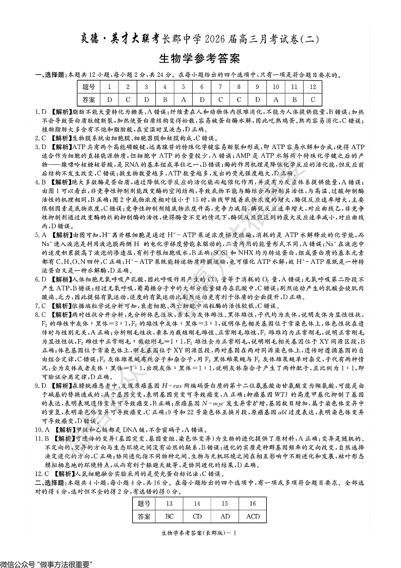 长郡中学2026届高三月考试卷(二)生物答案.pdf