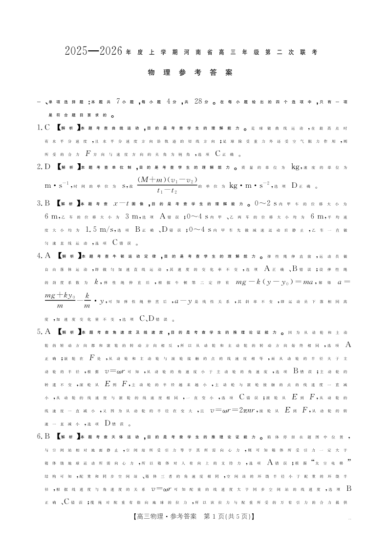 2025-2026年度上学期河南省高三年级第二次联考 物理答案.pdf