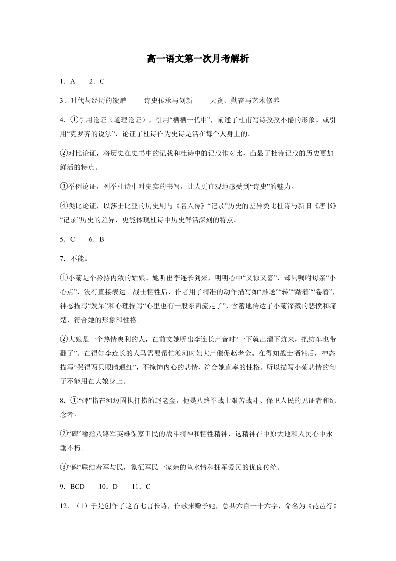 厦门英才学校高中部2025-2026学年度高一年级第一学期9月份考试 语文答案.pdf