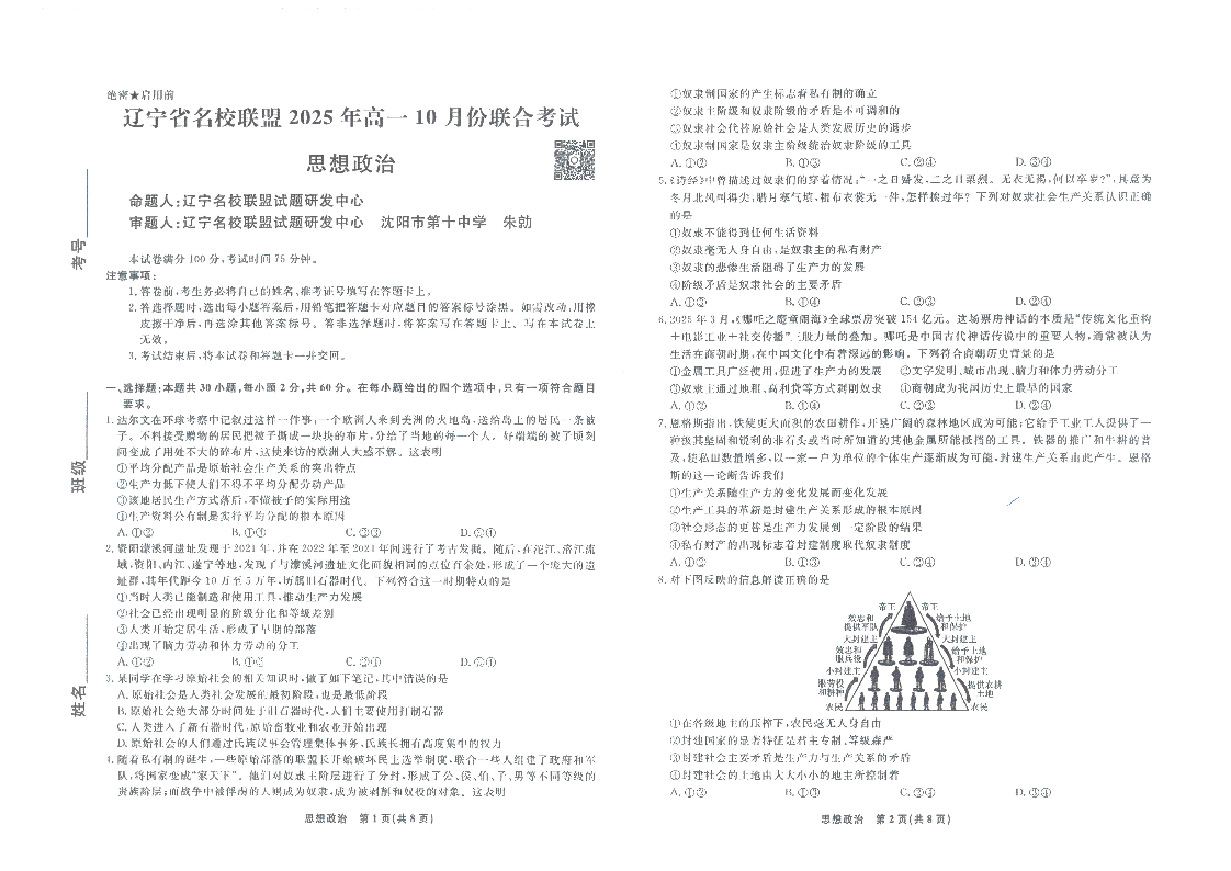 辽宁省名校联盟2025年高一10月份联合考试 政治.pdf
