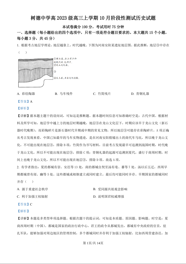 树德中学2025-2026学年高三上学期10月月考 历史答案.docx