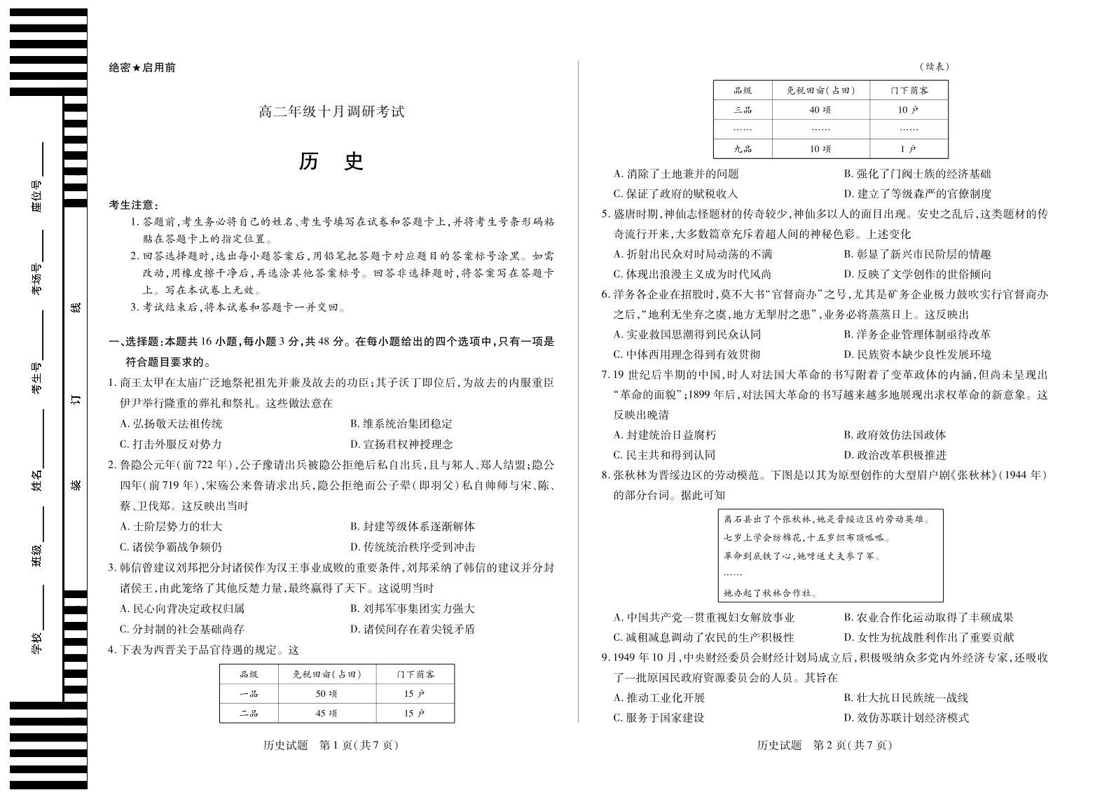历史 安徽高二年级十月调研考试.pdf
