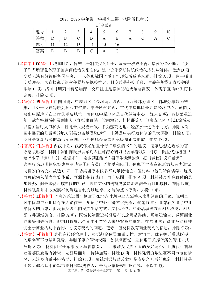 渤海大学附属高级中学2026届高三上学期第一次月考 历史答案.docx