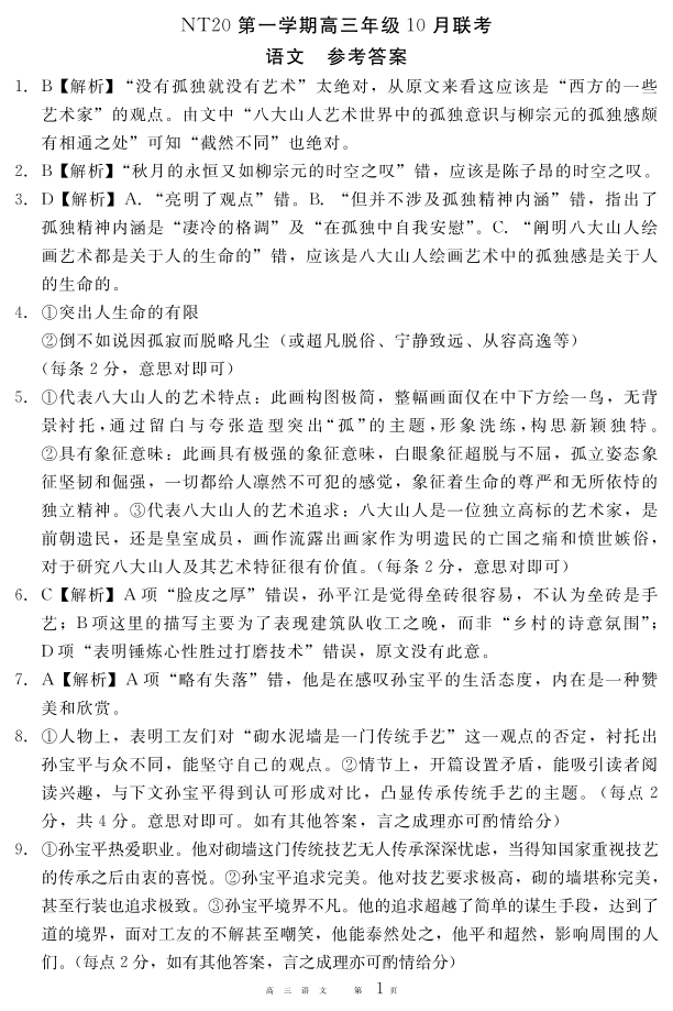 河北省NT20第一学期高三年级10月联考 语文答案.pdf