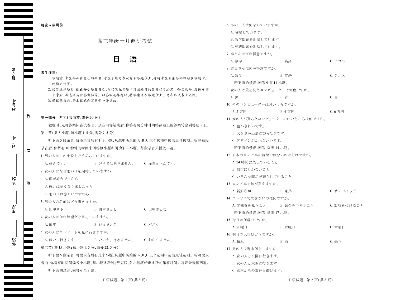 安徽省皖豫联盟2025-2026学年高三年级十月调研考试 日语.pdf