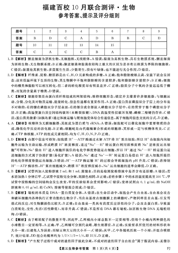 福建省百校2026届高三上学期10月联合测评 生物答案.pdf