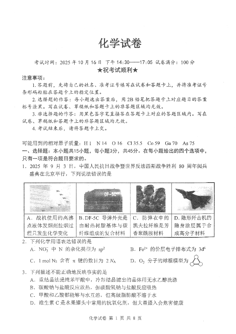 湖北省”腾·云“联盟2025年高三年级10月联考 化学.pdf