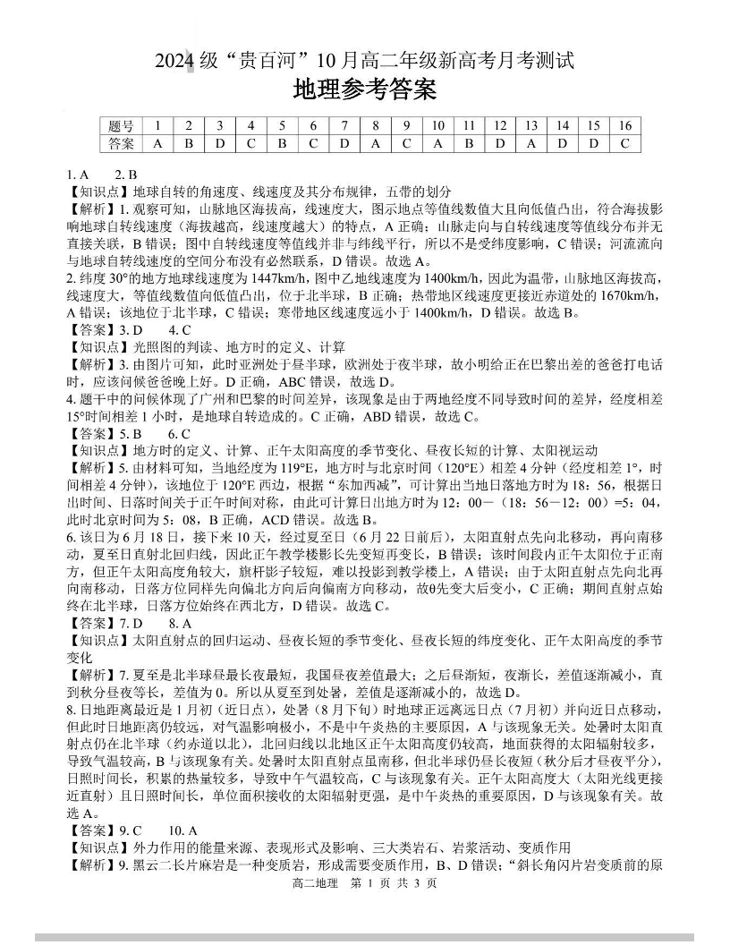 贵百河2025-2026学年高二上学期10月月考 地理答案.pdf