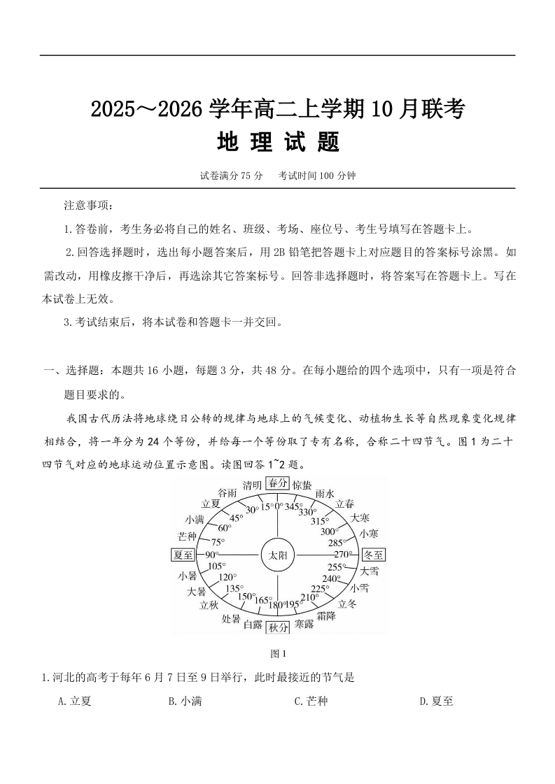 河北省保定市部分示范高中2025-2026学年高二年级10月月考 地理试题(含答案).docx