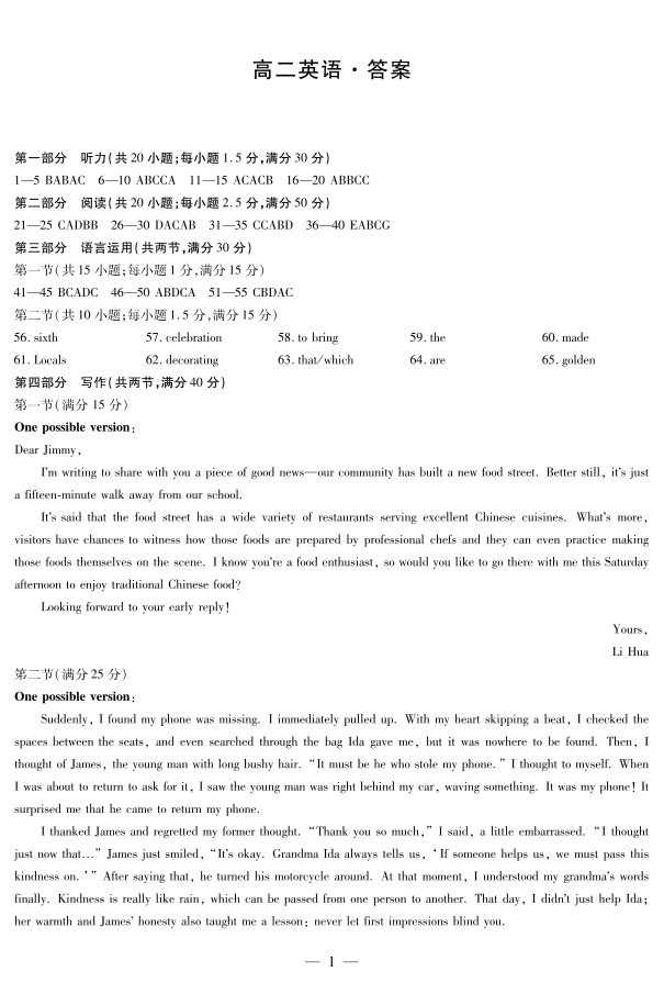 湖南省·天一大联考2025-2026学年高二上学期10月联考 英语答案.pdf