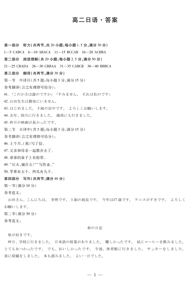湖南省·天一大联考2025-2026学年高二上学期10月联考 日语答案.pdf