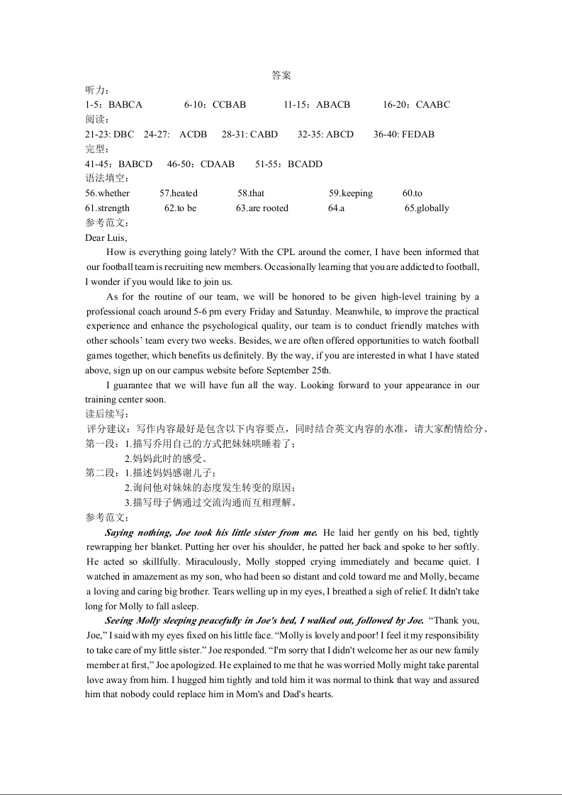 南充高中高2024级高二上学期第一次月考 英语答案.docx