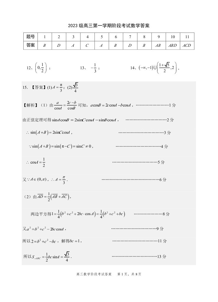 汕头市金山中学2023级高三第一学期阶段考试 数学答案.pdf