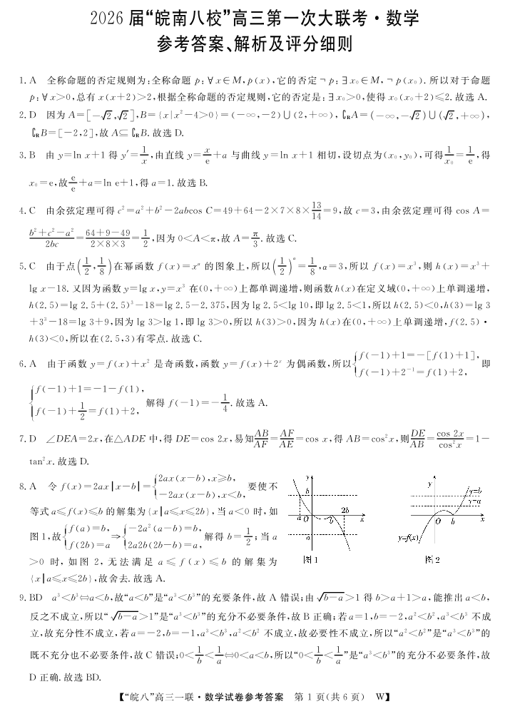 2026届“皖南八校”高三第一次大联考 数学答案.pdf