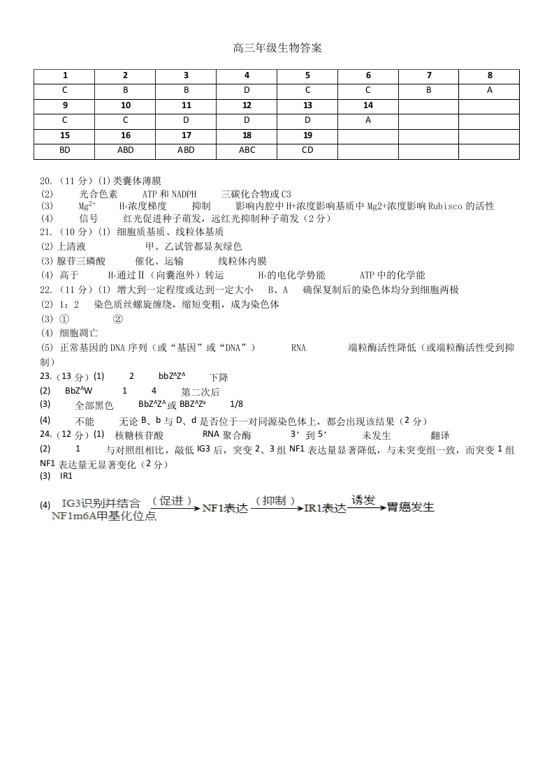江苏省无锡市三校2025年秋学期10月质量调研 生物答案.docx