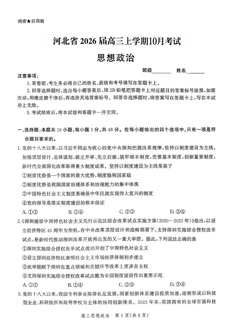 河北省示范高中联盟2026届高三年级阶段性联合测评 政治.pdf