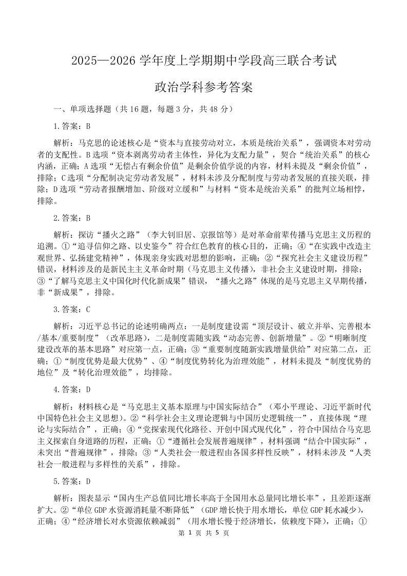 2025-2026学年度上学期高中学段高三联合考试 政治答案.docx