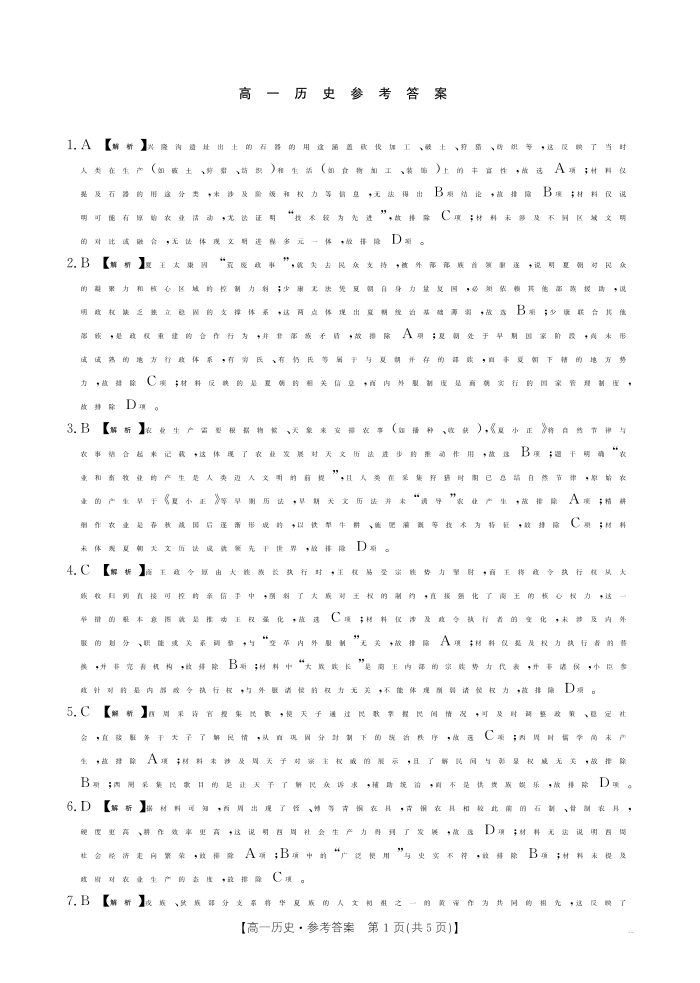 广东省2028届高一年级10月份联考 历史答案.pdf