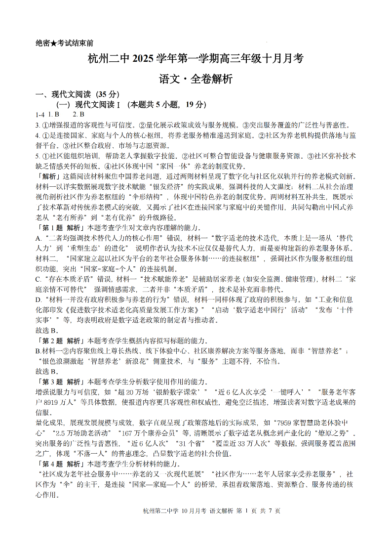杭州第二中学2025年10月高三年级适应性检测 语文解析.pdf