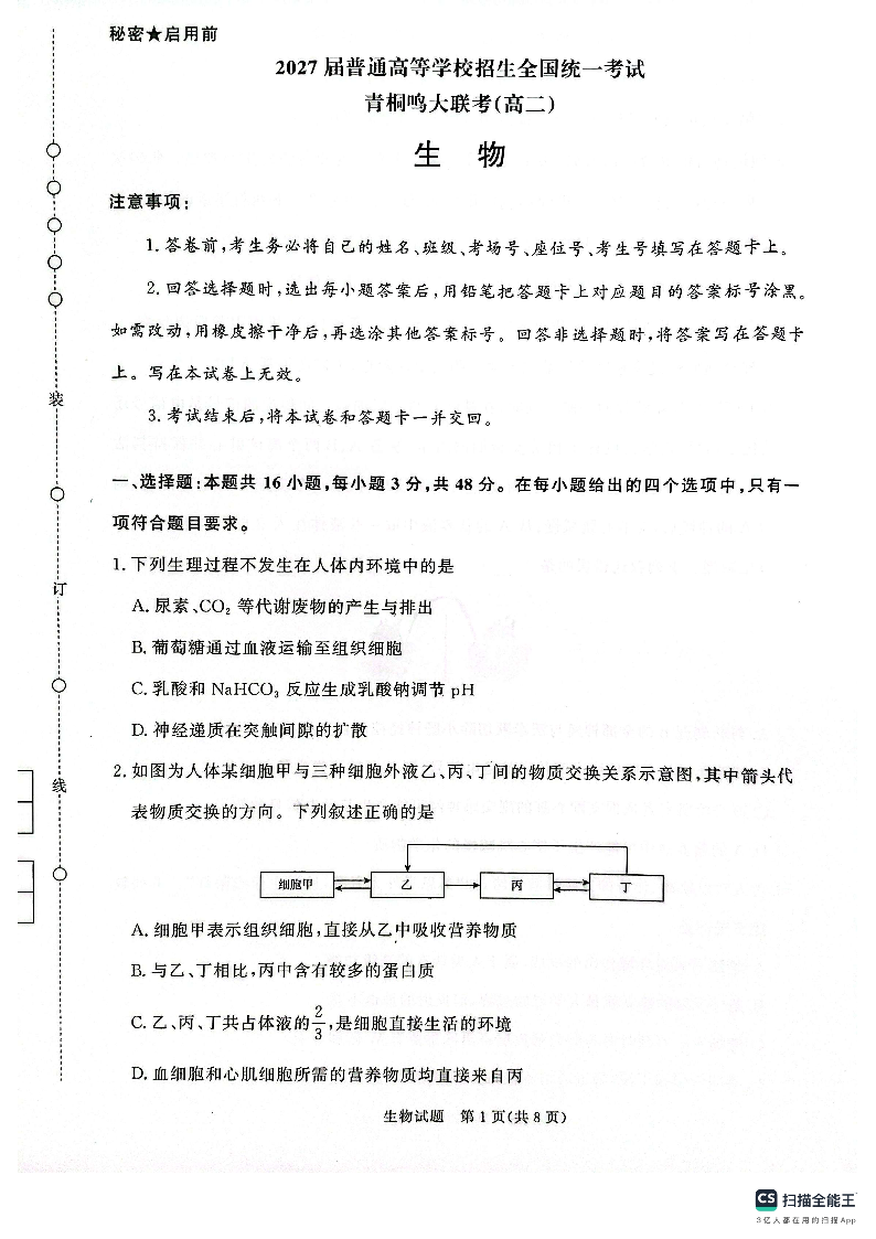 生物试卷-河南高二青桐鸣大联考2025年10月联考.pdf