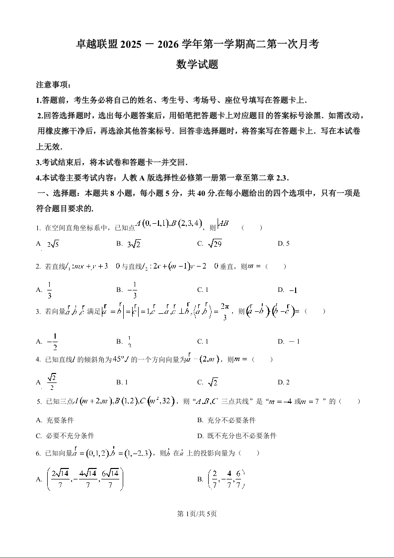 河北省邢台市卓越联盟2025-2026学年高二上学期10月月考 数学.docx